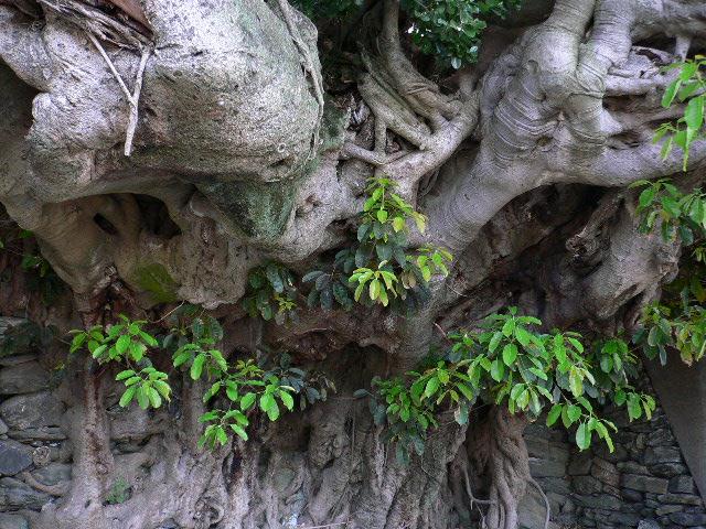 誰しも一度行ってみたいと思う、長い長い岬の先端の町、三崎町には、日本最北端と言われるアコウの巨木が自生している。元は7本あったが、今は4本と云われている。そのうちの3本の見事な写真をNornさんが送って下さった。 最大のものは、幹周7.0m、樹高13.5mと言われるが、樹高も幹周ももっと大きそうに思われる。その他のものも環境庁調査では、6.6m、6.05mと書かれている。アコウはクワ科の木で、他の木に絡みついて成長し、気根を伸ばしながらどんどん大きくなって、最後には元の木を締め付けて枯死させてしまう。熱帯ジャングルに育ちそうな恐ろしげな木である。イチジクと同じで5月頃に沢山の花嚢を付ける。 愛媛県松山市駅からは、1日3本(8:15、10:55、15:55)の三崎行きのバスが出ている。所要時間2時間45分、2620円也である。九州からはもちろん、対岸の佐賀関から出るフェリーが速い。1日10便ほどがある。 |