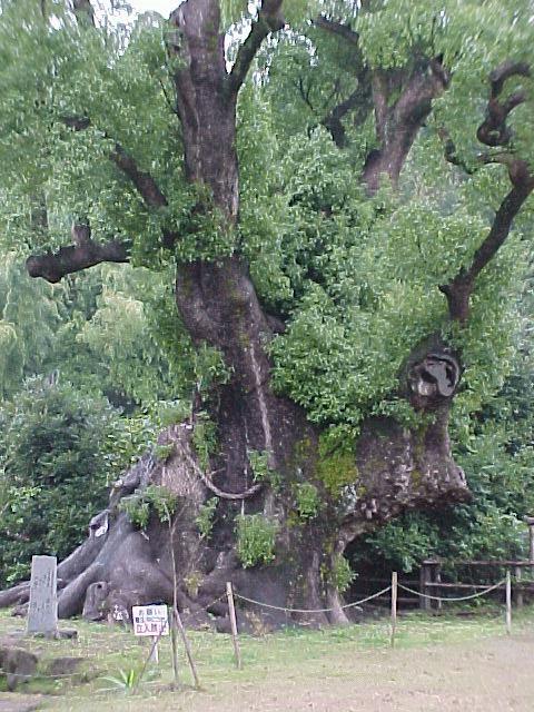 宮崎県最大のクスノキで、かつ県内第二位の巨木である。 大分県で製材業をしておられる和田さんから、素晴らしい「清武の大楠」の写真が 届きました。和田さんのお父さんは、名木・巨木の材を大切にされて、 材を最も生かすように工夫して、机や花器、水屋などに加工しておられます。 和田さんのホームページ ハラキリ親父の木工房を じっくりご覧下さい。 JR日豊本線の清武駅で降りて、北東1kmにある宮崎自動車道を越えて、さらに 北東に500mほど進むと北ケ迫というところに船引神社があります。 神社は1078年の創建といわれ、この裏に清武の大楠がたっています。 昭和26年、国の天然記念物に指定されています。 樹高35m、目通り幹周り13.2m、樹齢は900年とされ、根元は大きな空洞となっています。 以下は、和田さんからの現地報告です。 「地上8メートルまでの幹が空洞化して、5畳敷きほどの洞になっている。 洞の先の大枝は切り取られており、治療中なので周囲は立ち入り禁止となっている。 ...(写真の楠の)そのすぐ向かいにあった楠もかなりな巨木でした。 二本とも大事にされているのか、地元の人の手で綺麗に下刈りが施され、 治療が行き届いていました。 ...時々ありますよね?説明板を直接幹に打ちつけられたり、 根元に無造作に杭を入れられたりしている樹が。 あれ見る度お役所仕事ってやっつけだなあとガックリします。 みんなこんな風に大事にしてくれるといいですねえ♪」 |