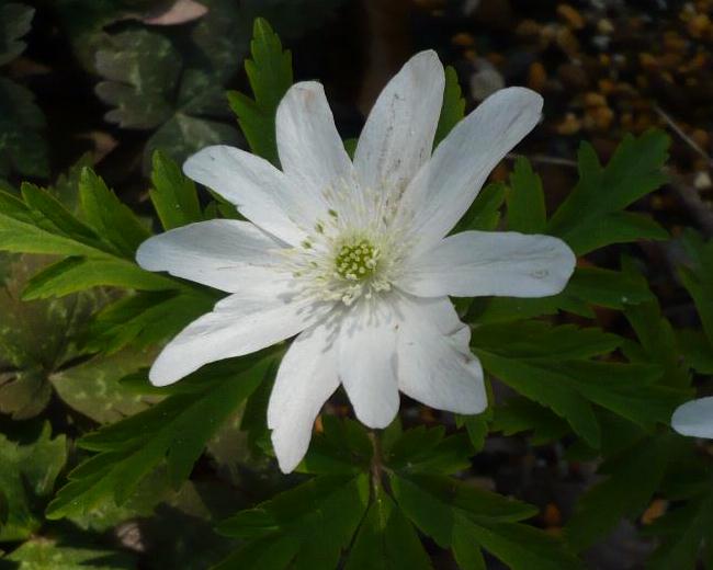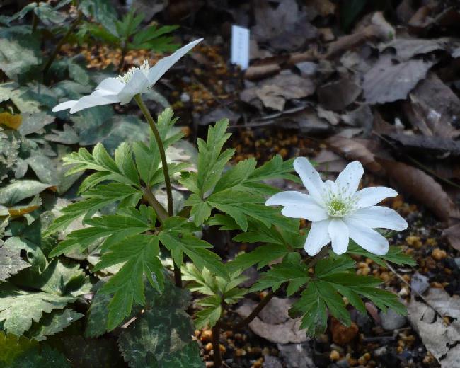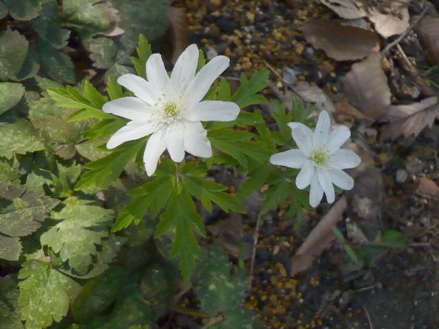 (2008.3.25、京都府立植物園)| 雪割草と並んで早春を代表する大型の花である。白色あるいは淡紫色で30mmにもなる花を一輪ずつ付ける。花弁はなく、花は10−13個の萼片からなる。茎葉は3出複葉で3枚が輪生する。3−5月に山地の林床で花を開く。 イチリンソウ科には美しい花が多く、アズマイチゲ、イチリンソウ、ニリンソウ、ハクサンイチゲなどがよく知られている。庭に植えられることの多い「シュウメイギク」も中国から渡来したイチリンソウ科の草目である。 学名はAnemone pseudo-altaicaで、キンポウゲ科イチリンソウ属である。北海道と本州の近畿地方以北の山地に分布する。キクザキイチリンソウとも呼ばれる。 |
