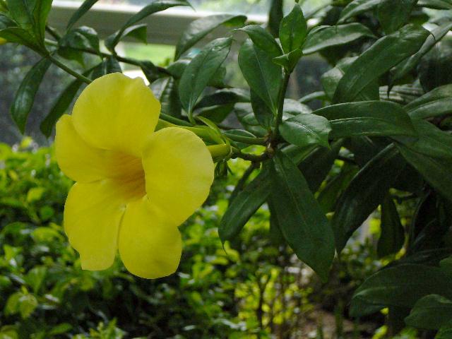 あまりの暑さにめげて、屋内の植物園に出かけた。かつて「花の万博」があった大阪の鶴見緑地の「さくやこの花館」である。ここで、ようやく「アリアケカズラ」の写真を撮ることが出来た。以前に石垣島で撮った写真の出来が悪かったので気になっていた。 南米原産の常緑蔓生の木で、夏に鮮やかな黄色の花を付ける。明治末期に南米から移植されたと言われるが、余り本州で見ないのに沖縄に多いのは、気候が合っているからであろう。 学名はAllamanda cathartica var. hendelsoniiで、キョウチクトウ科アリアケカズラ属である。 |