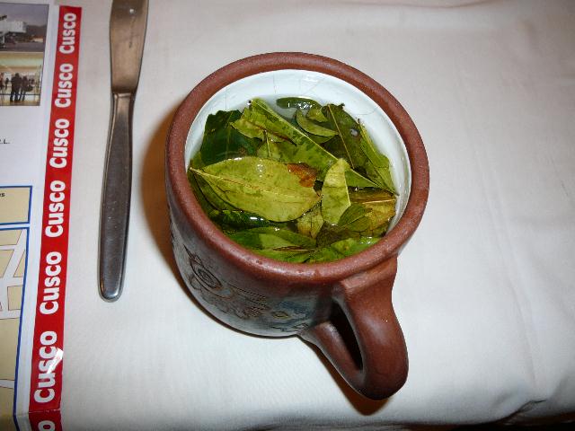 マチュピチュ遺跡の中に小さな植物園が作ってあって、そこでコカの木を見付けた。コカは南米原産の低木で、その葉からはコカインを抽出することが出来る。コカの葉は「コカ茶」としてペルーでは日常の大切な飲み物になる。単に乾燥した葉を集めて湯を注ぐだけであるが、癖のない味で日本のお茶と同じように飲みやすい。砂糖を入れても良い。抽出されるコカイン成分はごく微量と思われるが、高山病に効き、疲れを癒すと言われる。持ち帰りたかったが、税関の麻薬犬が怖くて止めた。 コカの花は白い小さな5弁の花である。写真に小さく写っているが解像度が悪く解らない。花の後は小さな実となり、赤く熟す。 学名はErythroxylon cocaで、コカノキ科コカ属の常緑低木である。南米原産とされるが、インドやアフリカでも類似種が見られる。 |