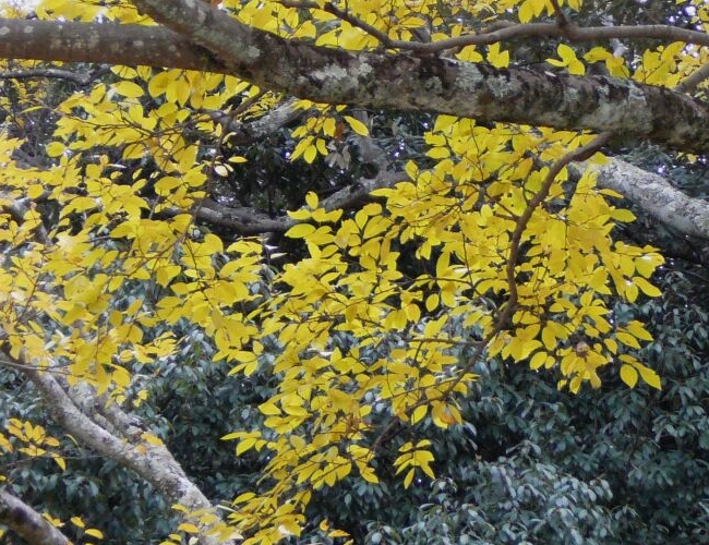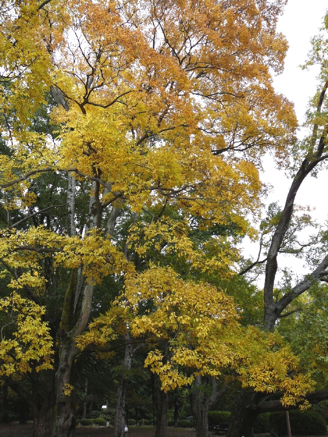 エノキはなかなか紅葉しない。11月終わりまで、まるで常緑樹のような顔をしてすましているが、12月にはいると綺麗に紅葉して葉を落とす。20m以上の喬木になる。江戸時代、一里塚に植える木として推奨された。