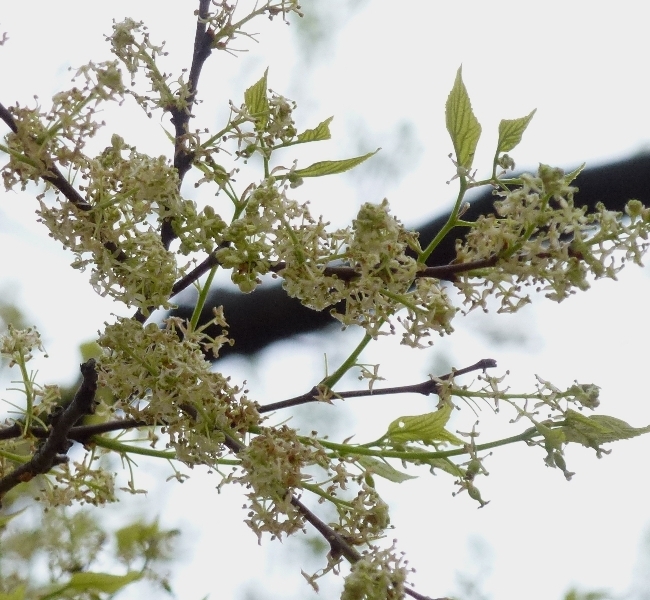 満開のエノキ−花の後に葉が展開する(豊中稲荷公園 2016.4.11)