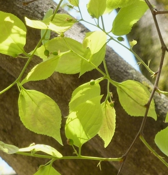 エノキの若葉と出来立ての実(豊中稲荷公園 2016.4.11)