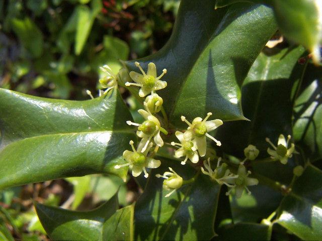 クリスマスの時には、鮮やかな赤い実でケーキを引き立てるセイヨウヒイラギも、春の花は目立たず小さい。ちゆきさんが、近所のクリーニング店で鉢植えされていたセイヨウヒイラギの花の写真を送って下さった。 この花は雌花であるが、一見してヒイラギの花とは違うことが解る。ヒイラギはモクセイ科で、花はよい芳香を放つが、セイヨウヒイラギの花はモチノキ科特有の緑の花で匂わない。写真の雌花は、やがて緑色の実となり、晩秋には赤く色付く。 西洋ヒイラギの学名は、Ilex aquifoliumでモチノキ科ヒイラギ属である。雌雄異株の常緑高木で、ヨーロッパ、北米に広く分布する。英名は、English hollyあるいは、Christmas hollyである。 |