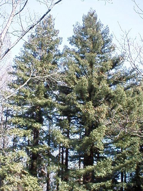 残念ながら、日本では植物園でしかセコイアを見ることは出来ない。写真は大阪市立大学植物園で写したものである。 メタセコイアは落葉樹であるが、セコイアは常緑である。雄花は黄色で葉の先端に付き、2−4月に開花する。雌花は緑色で、2cm程の球果になり、秋には褐色に変わる。 学名は、Sequoia sempervirensでスギ科セコイア属である。日本名はイチイモドキあるいはセコイアメスギと呼ばれている。類似の木でセコイアオスギ(Sequoiadendron giganteum) と呼ばれるものは、葉の開きが扁平でなく、スギに似ている。これもカリフォルニア原産である。 |